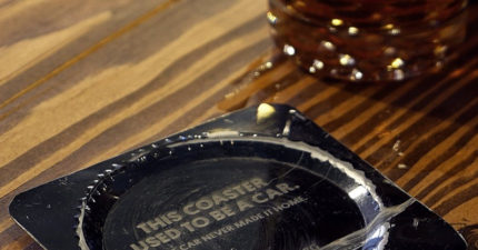 美國酒吧用「沒有成功回家的車做成的杯墊」,來提醒大家「不要酒駕」…