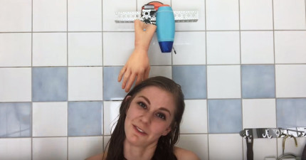 這女生說發明出一隻可以幫你洗頭髮的超高科技機器手,但我覺得很快就需要說「RIP」了…