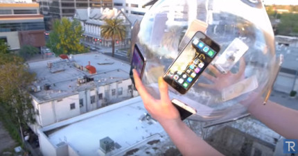 他把14台iPhone 6黏上一顆玻璃球從30.5公尺高的屋頂往下丟,存活率讓我太驚訝了!