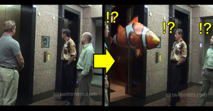 他們按了電梯準備下樓,結果電梯門一打開卻「游出了一條魚」!
