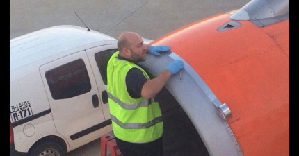 起飛前一位乘客發現工人正在用「膠帶修飛機引擎」,然而航空公司超隨便的回應真的太令人噴飯了!