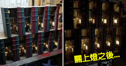 以為是《哈利波特》斜角巷的「藝術品等級書架」 鏡頭拉遠才發現被騙了!