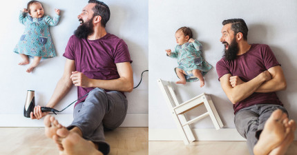 這些絕對不是PS的!調皮老爸利用小技巧跟1月大小寶寶拍出最「危險」的可愛照片。