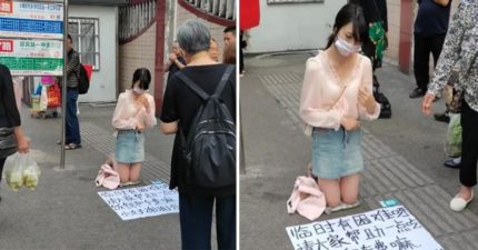年輕正妹「當街跪地乞討」!手上還擦指甲油 知情人揭內幕:不是第一次