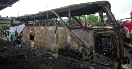 載滿師生!校外教學釀意外 校車「燒到剩骨架」25人喪命