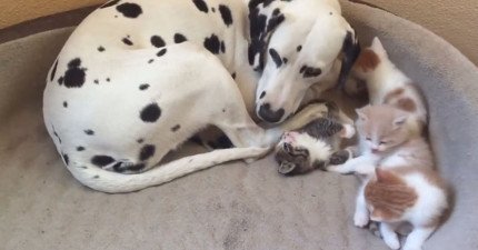 這隻大麥町和他領養的小貓咪互動的模樣,會可愛到讓你「暫時忘記明天還需要工作」。