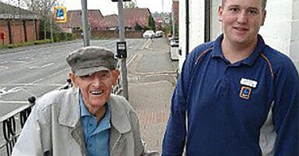 這名年輕18歲超市店員牽著一名95歲老先生購物後回家的照片造成網路大轟動。