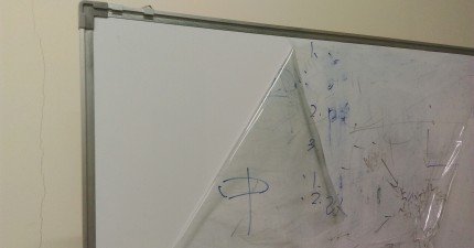這名網友本來準備要把髒到不行的白板丟掉,但忽然在右上角發現到一小行字。我笑到在地上打滾…