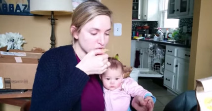 每當這個媽媽咬一口洋芋片,寶寶做的事情也會讓你忍不著跟著一起笑!